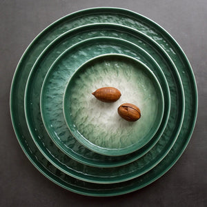 Apportez une touche d'élégance naturelle à votre table avec l'assiette dégradée Émeraude. Inspirée des forêts luxuriantes, sa finition aux nuances vertes subtiles en fait une pièce à la fois décorative et fonctionnelle. Chaque assiette est unique, avec un dégradé raffiné qui capte la lumière et sublime vos repas.