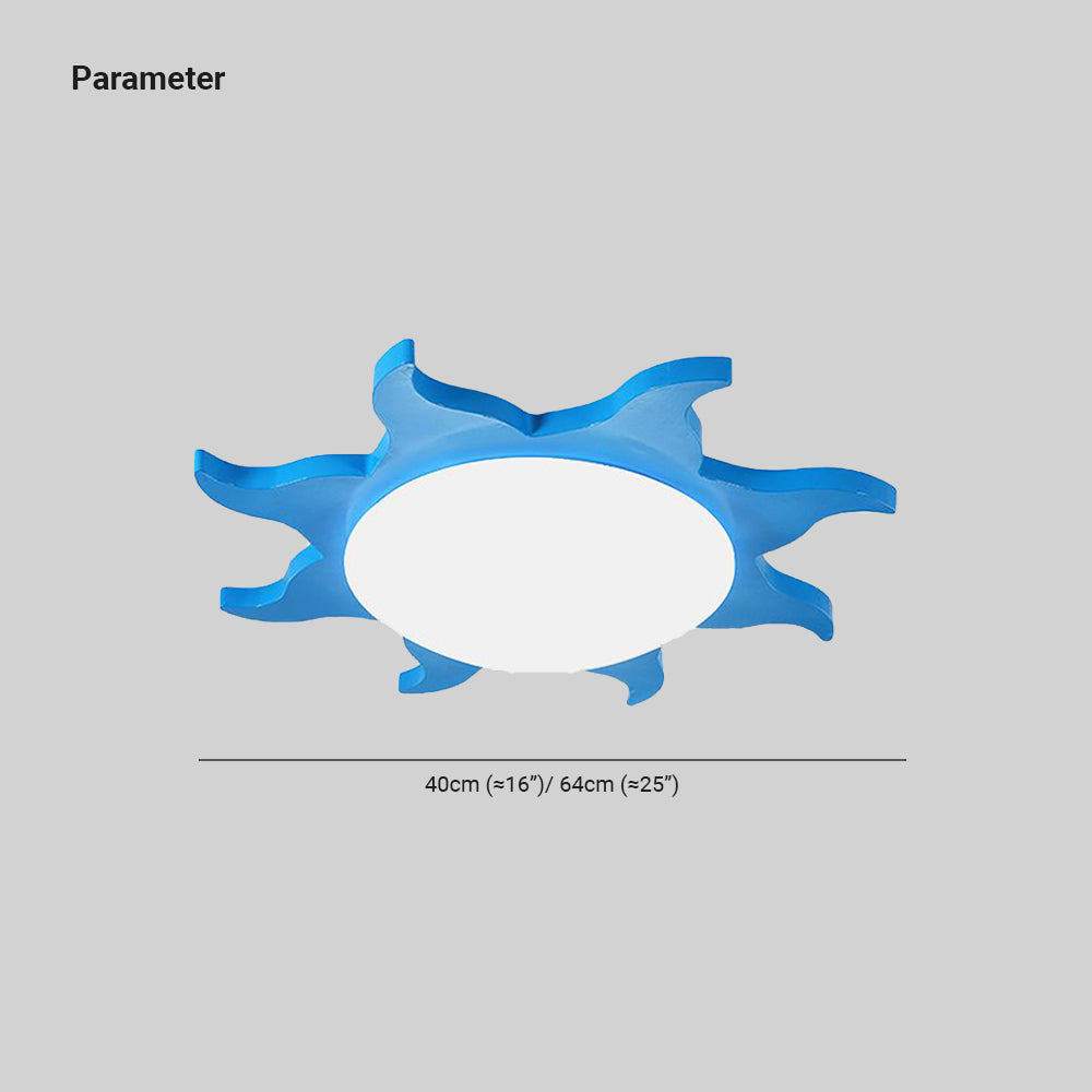 With its sunburst‑like round shape, the fixture presents a contemporary, playful aesthetic that suits modern interiors. The multicoloured acrylic panels create a luminous surface that glows softly, making it an expressive addition to living rooms, bedrooms, dining areas or hallways. The flush‑mount design keeps sightlines clean and works well in rooms with lower ceilings or minimalist schemes.