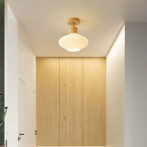 Perfect for hallways and corridors, the fixture also works well in living spaces, bedrooms and dining areas where a compact, refined light is preferred. Its versatile walnut finish and glass diffuser make it compatible with a range of interior styles, including minimalist, Scandinavian and modern traditional decors.