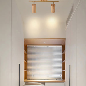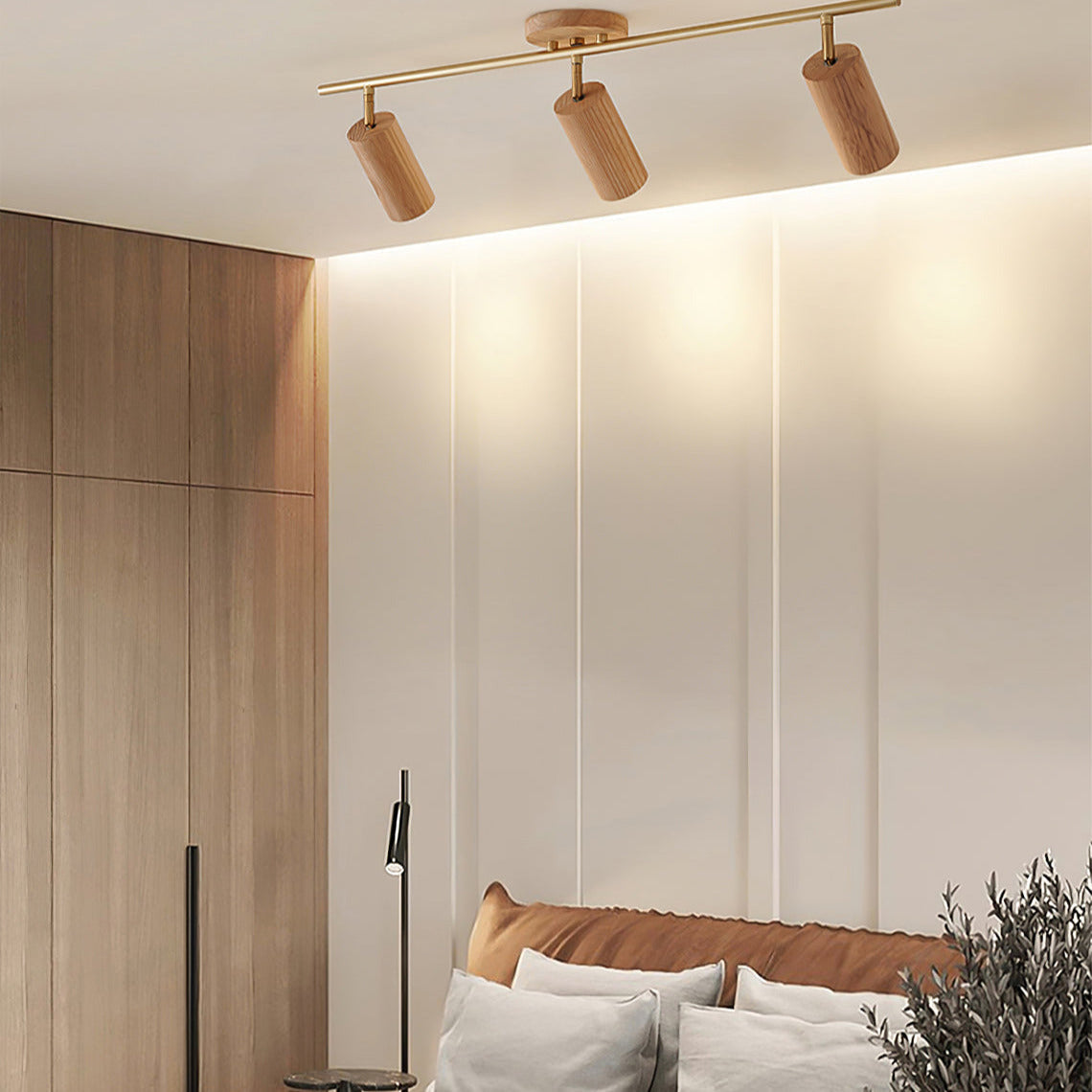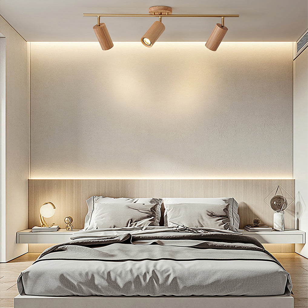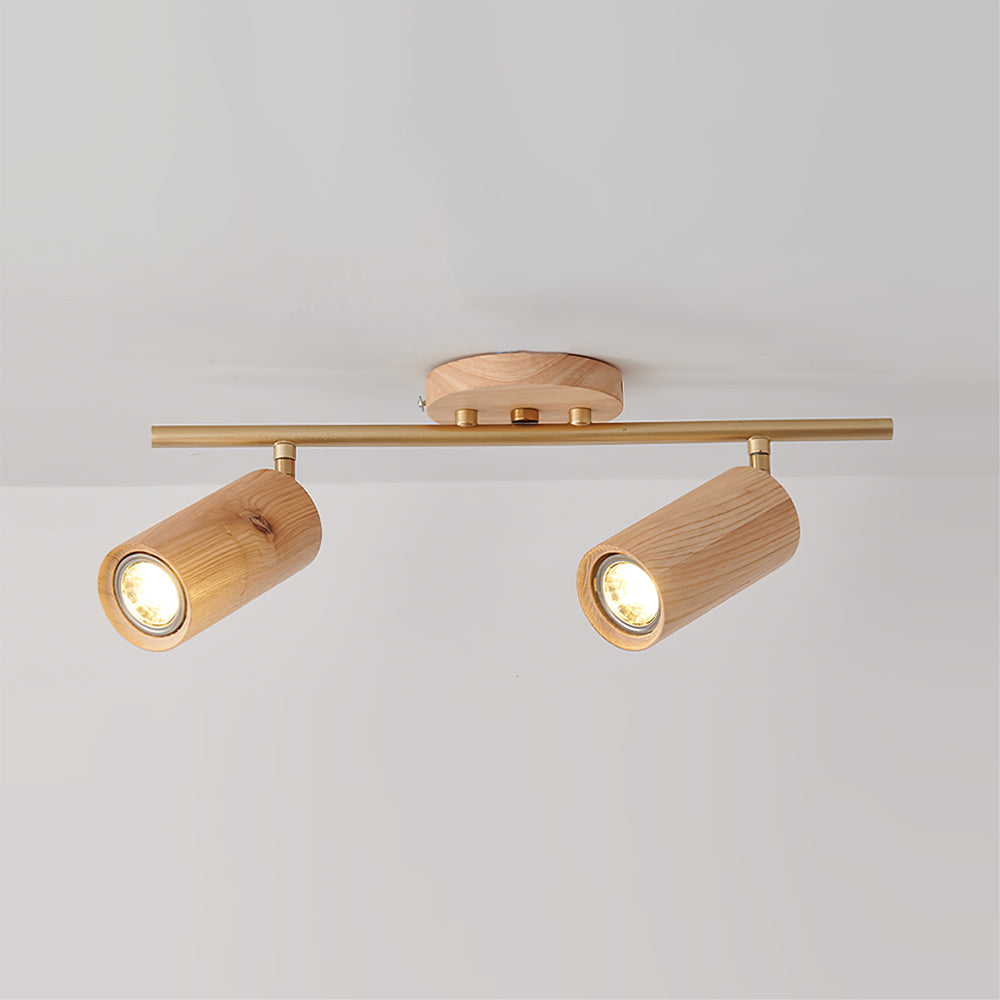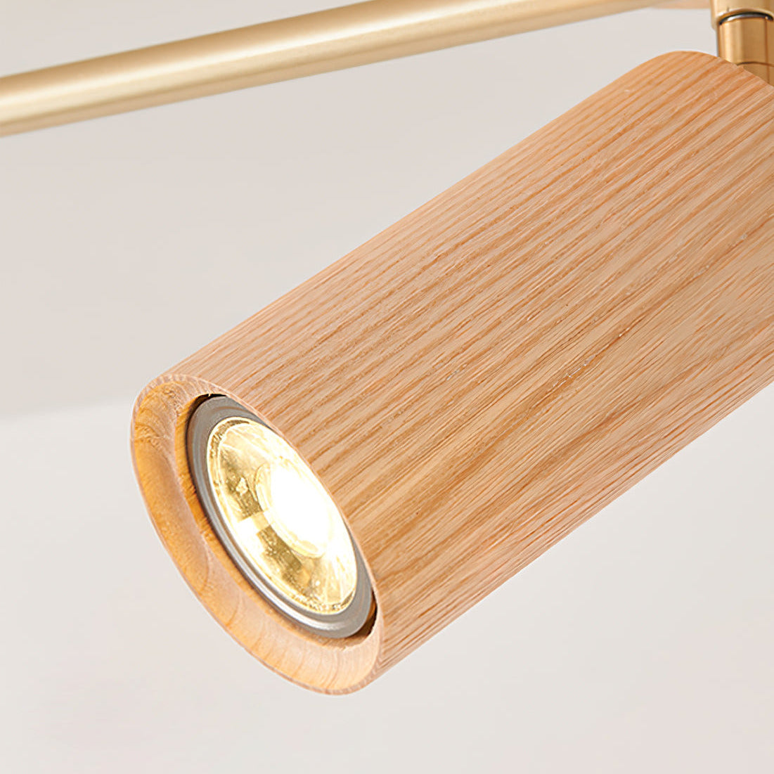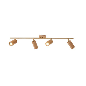 The Minimalist Wood And Brass Four Head Ceiling Spotlight combines natural wood with a brushed brass bar in a restrained, contemporary form. Four cylindrical wood heads are mounted along a slim bar finished in a warm gold tone, creating a refined presence that remains adaptable to a range of interiors.