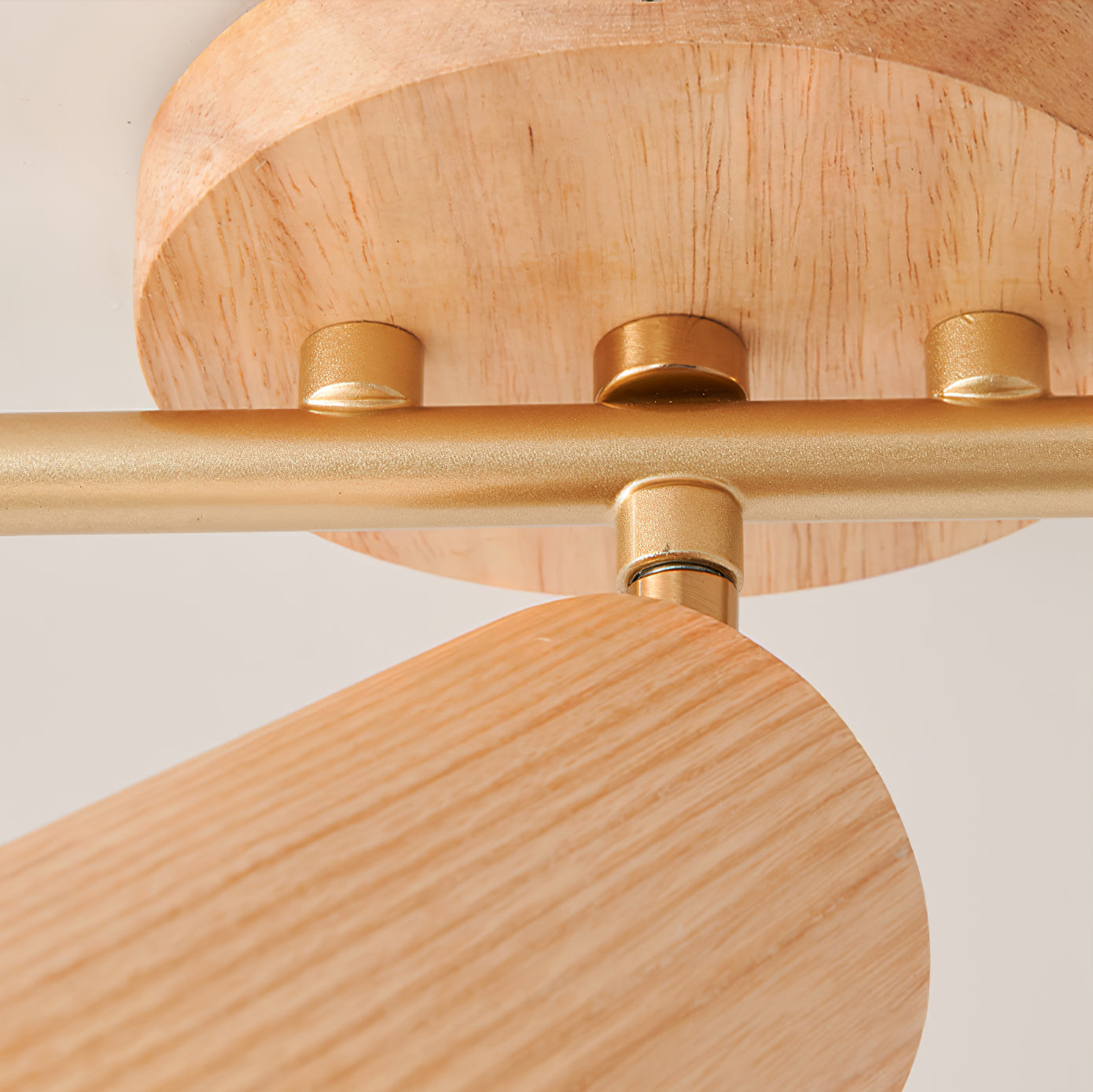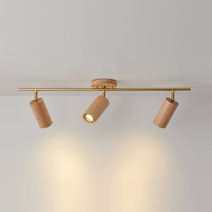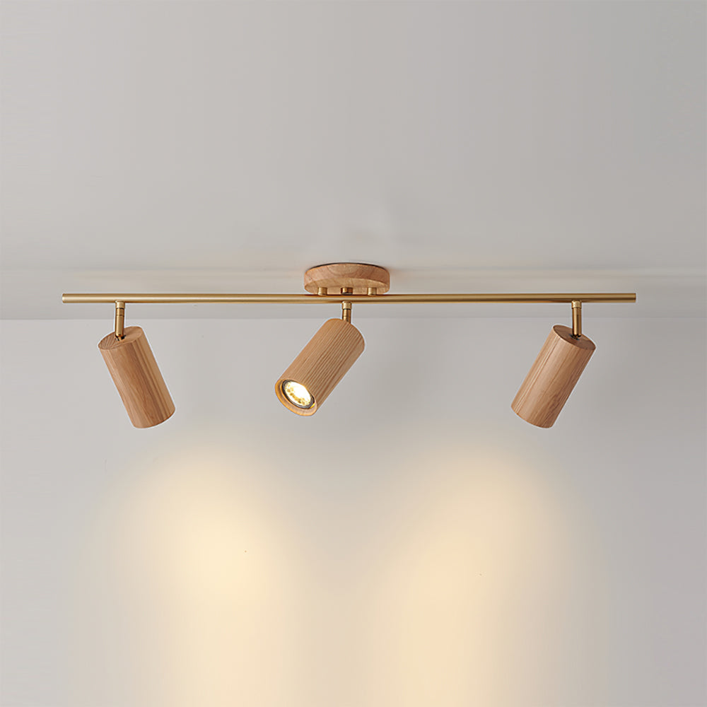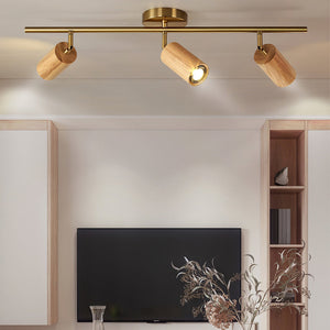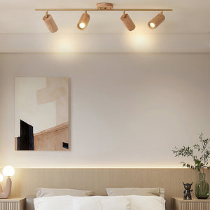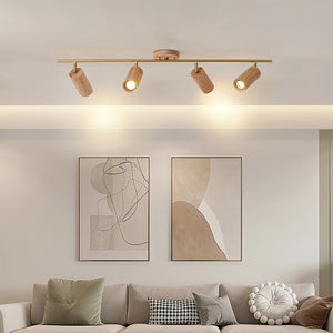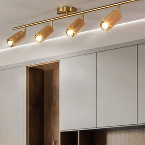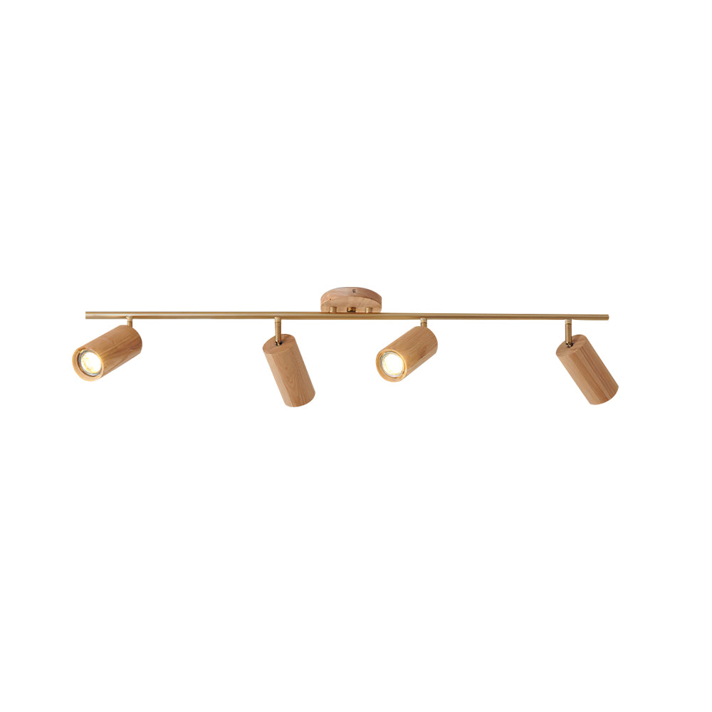 Minimalist Wood And Brass Four Head Ceiling Spotlight