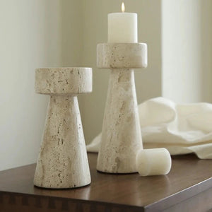 Bougeoir en Travertin Naturel – Élégance Rustique