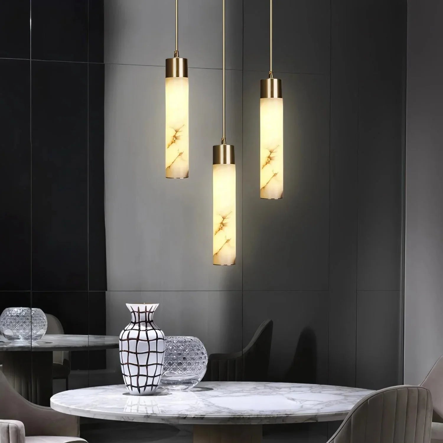 Perfect above a dining table to create an intimate dining experience, or suspended over a bed or seating area to introduce a calm, luxurious tone. Its natural stone texture and warm glow pair well with contemporary, minimalist, or classic interiors seeking understated elegance.