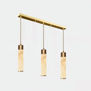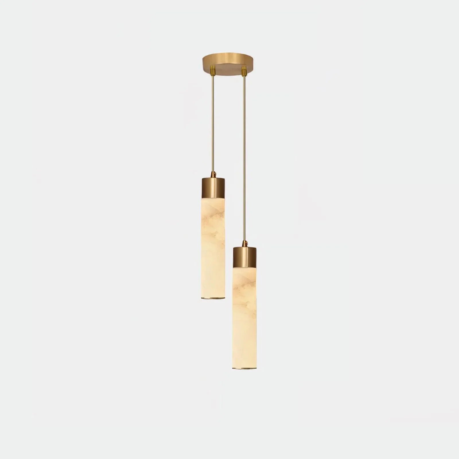 The shade is crafted from natural alabaster mounted on a robust metal framework. This pairing delivers a durable pendant with a refined, architectural presence. Please note that alabaster is a natural material, so individual pieces exhibit unique veining and tonal variation, and patterns may differ slightly from the images.