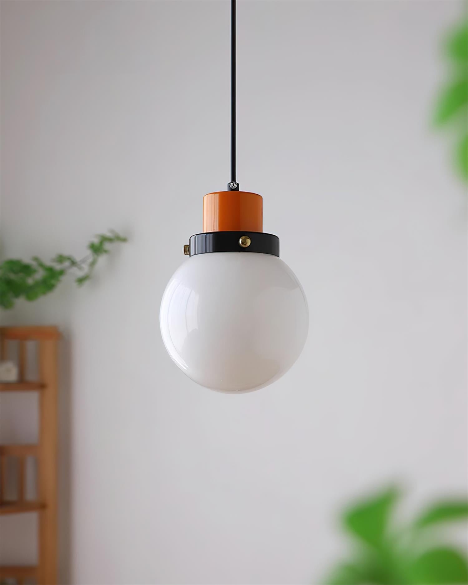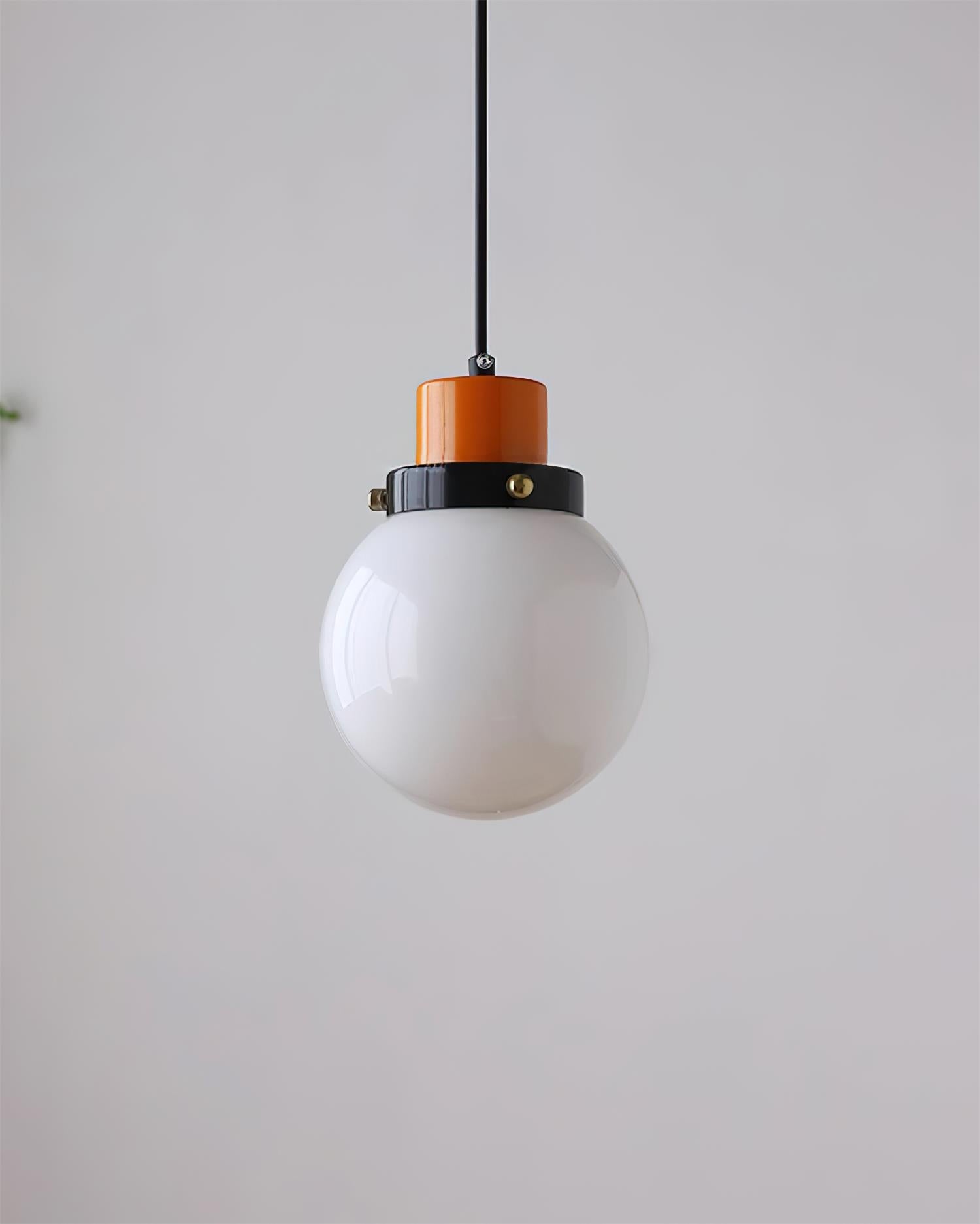The Glass Globe Pendant Light offers a refined focal point for indoor spaces, combining a crisp white glass shade with a sturdy metal frame. Designed to be both practical and stylish, this dimmable ceiling light adapts to a range of interiors and is available in Black, Orange or White finishes to suit your décor. The fixture is hardwired and and ready to illuminate with compatible dimmers for adjustable ambience.