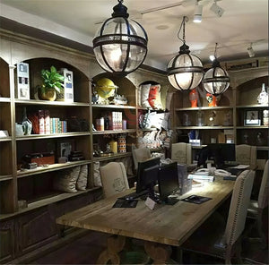 Vintage Glass Globe Pendant Lamp With Rust Colored Frame