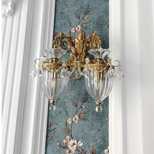 Brass Crystal Dual Size Wall Lamp Hardwired Dimmable