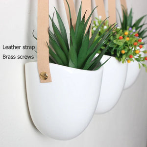 Fabriquées à partir de céramique de haute qualité, ces jardinières suspendues offrent un support stable et sécurisé à vos plantes. Les sangles en cuir véritable et les broches en laiton ajoutent une touche sophistiquée, faisant de cet ensemble un accent déco unique et contemporain.
