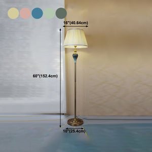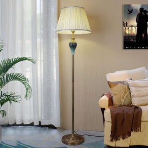 Antique Floor Lamp With Fabric Shade In Multi Colour Finish