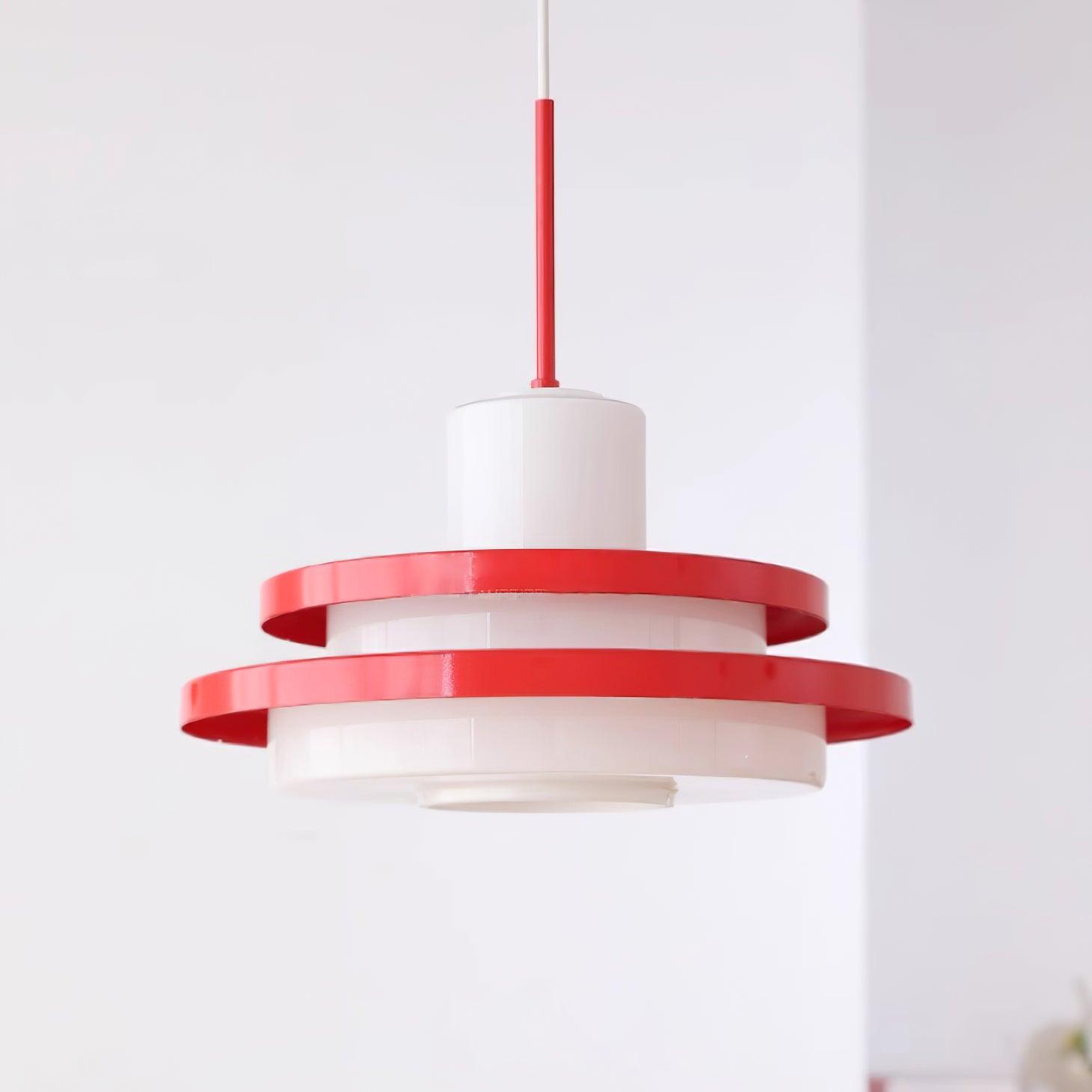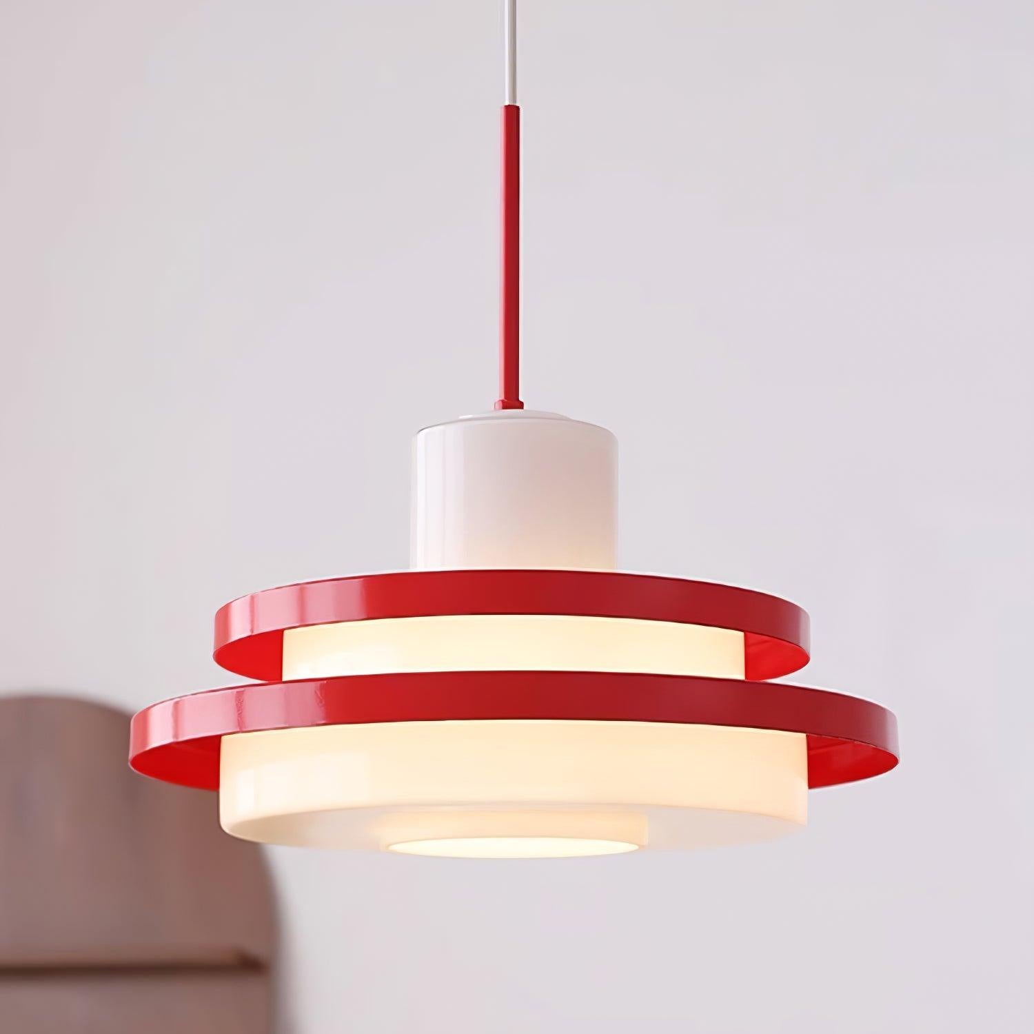 Introduce a touch of contemporary elegance to your space with this red and white glass pendant light. Combining a sleek glass shade with a sturdy metal frame, it brings a refined ambience to dining areas, kitchen islands, and living zones. The two-tone colour scheme adds visual interest while remaining versatile for a premium interior.