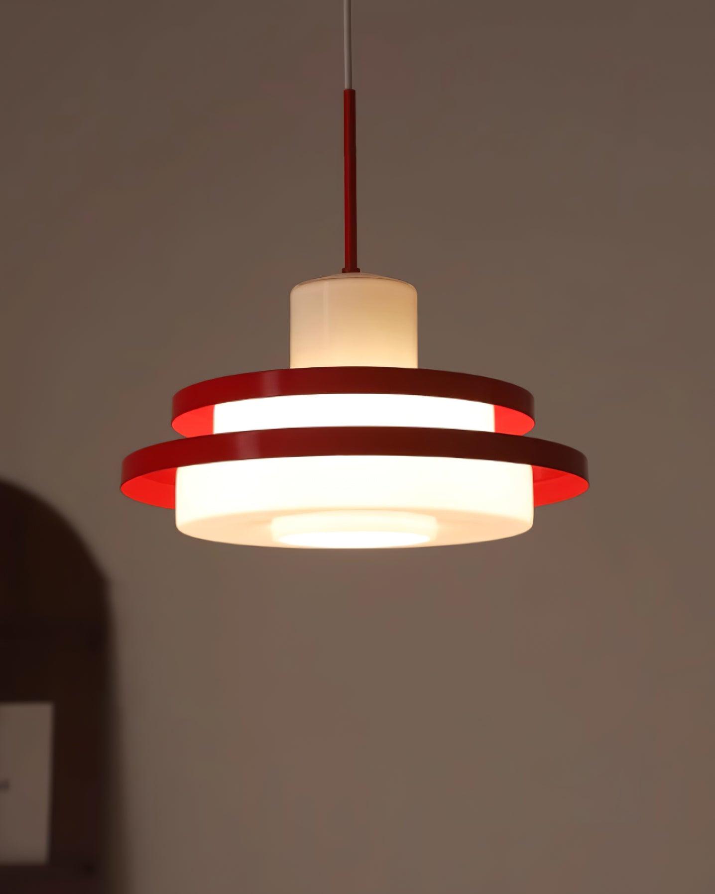 - Shade: glass with a red and white colour scheme, crafted for a clean, modern look