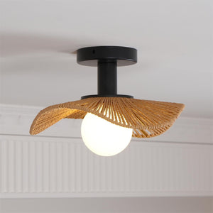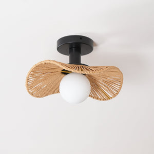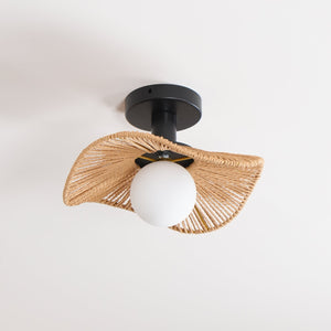 This semi‑flush ceiling light combines a robust metal frame with a hand-wrapped hemp rope accent and a glass shade to create a refined, contemporary presence. Available in three sizes, it offers adaptable scale for a range of rooms and ceiling heights.