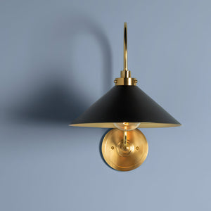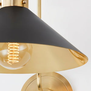 Helena Vintage Brass Wall Light With Conical Shade