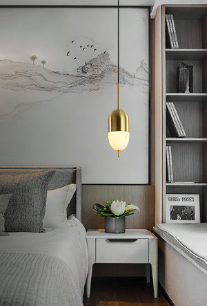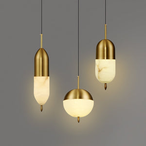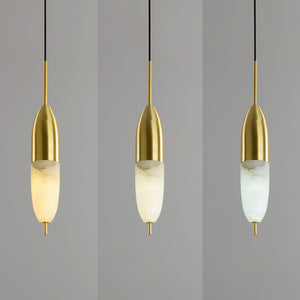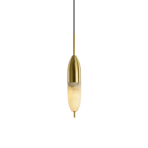Brass Pendant Light With Alabaster Shade And Integrated Led