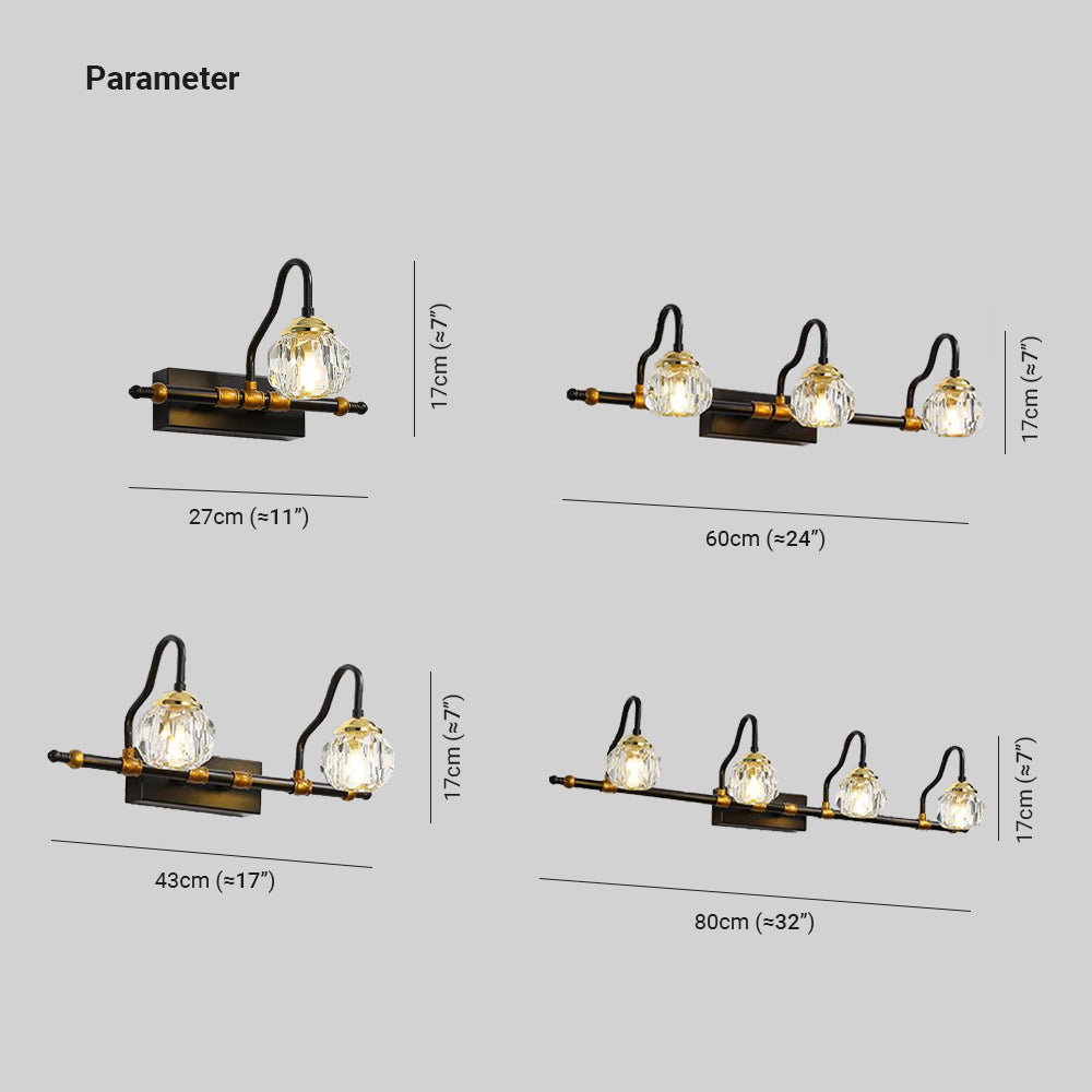 Introducing a sophisticated Crystal Globe Vanity Wall Light, finished in a sleek black hue that complements contemporary interiors. This wall lamp blends a refined metal frame with crystal detailing to create a subtle, ambient glow that enhances vanity mirrors and surrounding walls.