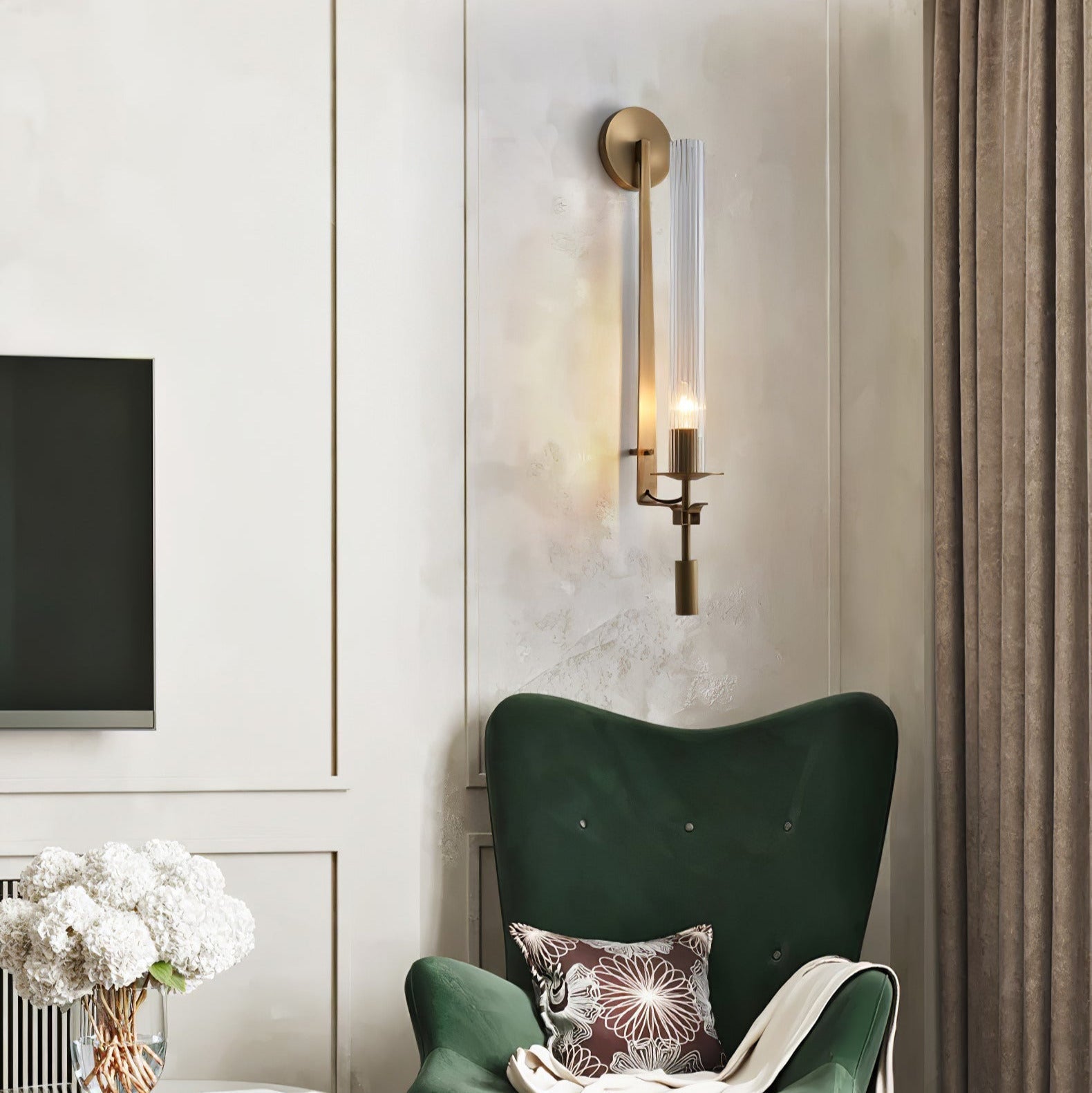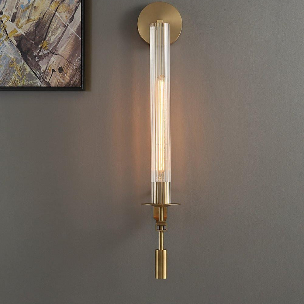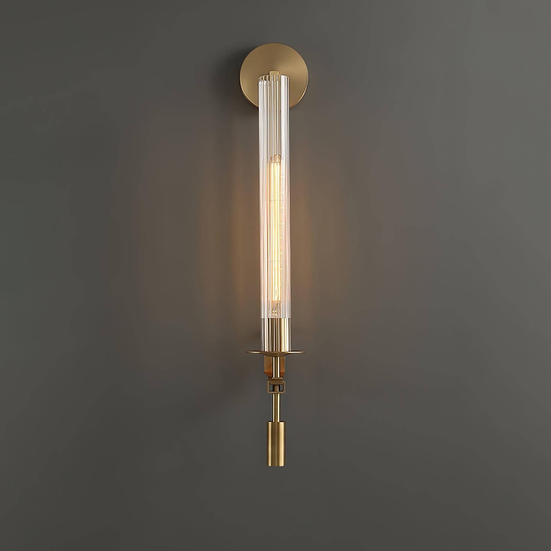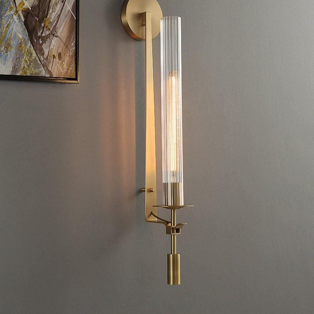 Indoor Brass Glass Wall Lamp With Ribbed Cylinders