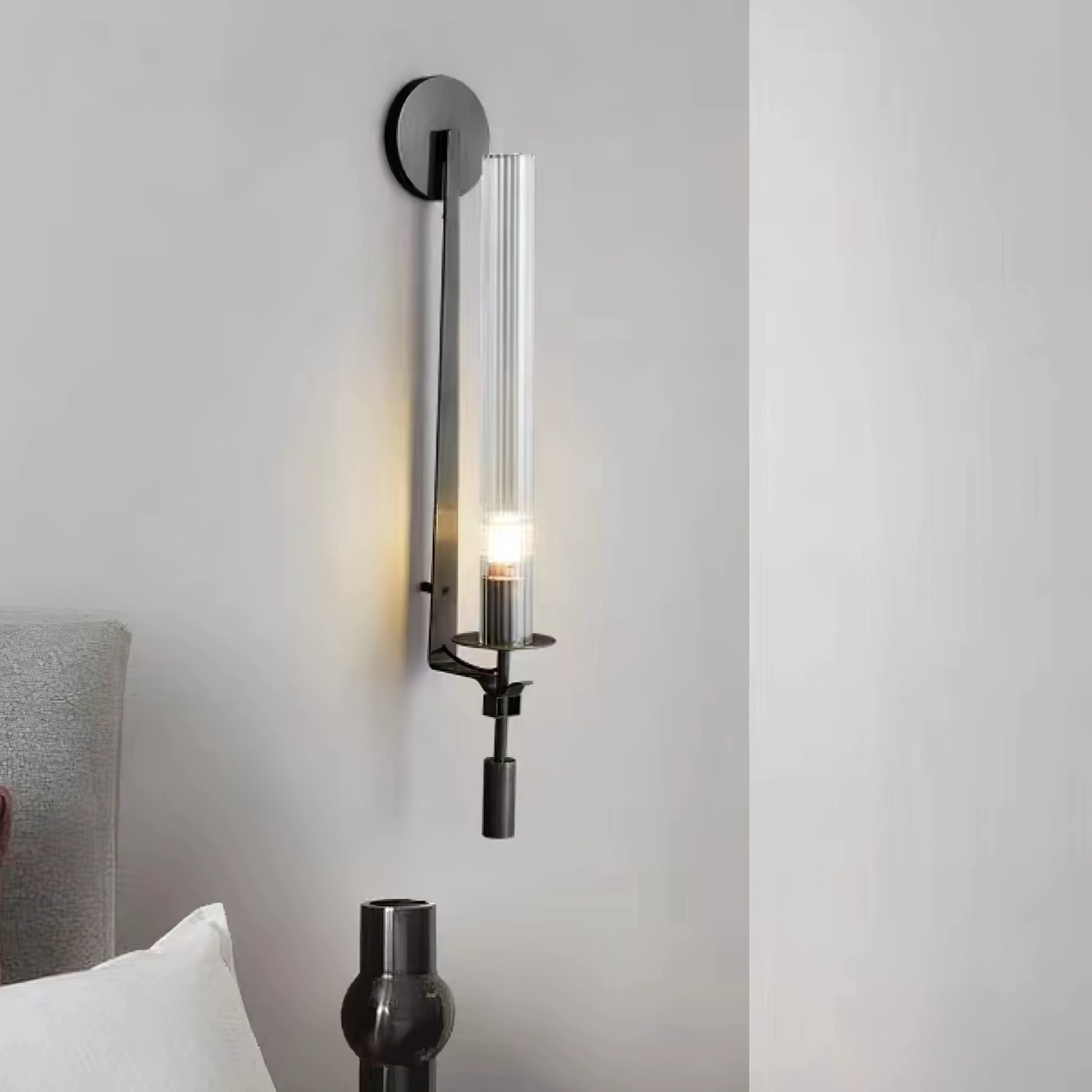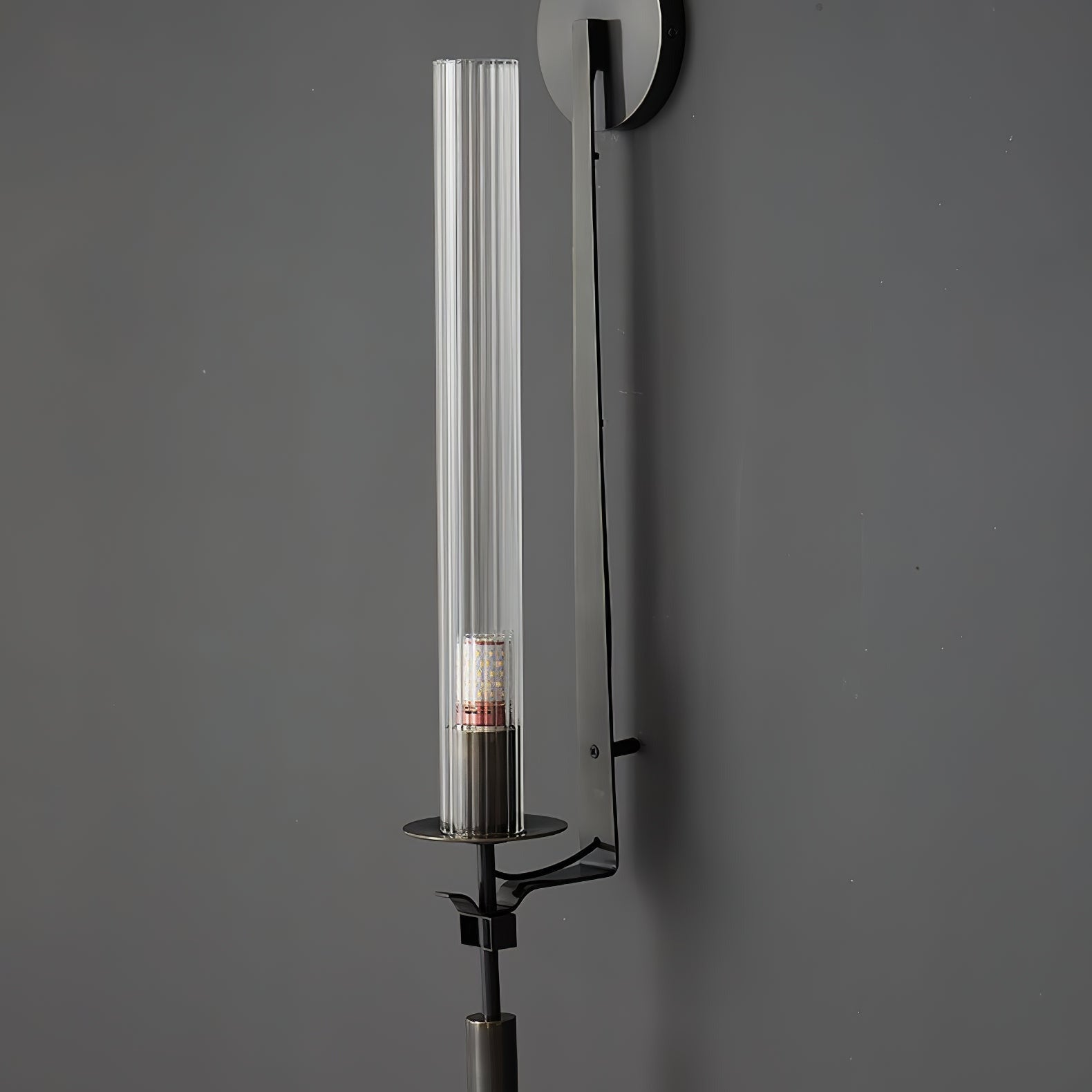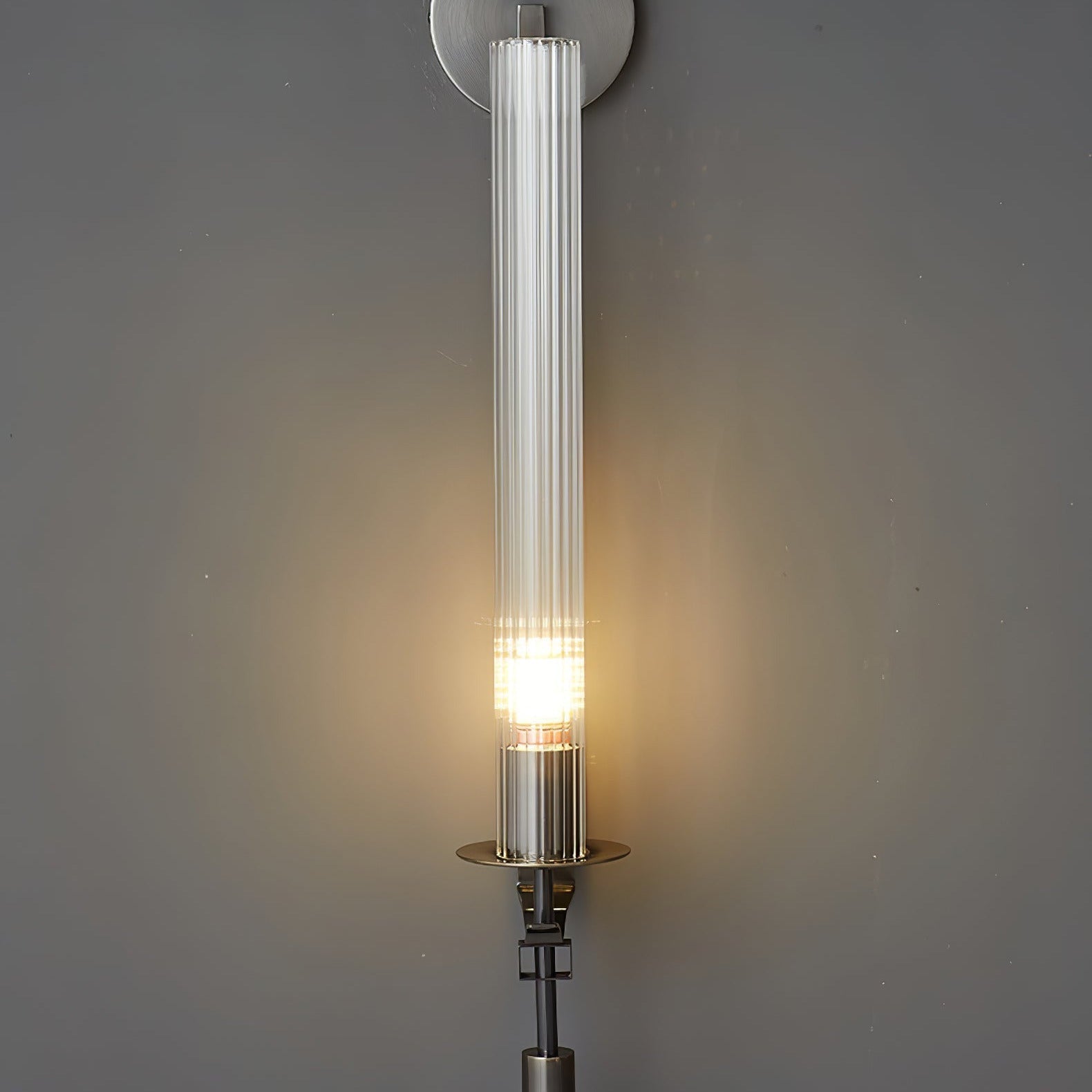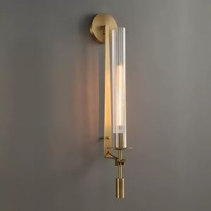 Indoor Brass Glass Wall Lamp With Ribbed Cylinders