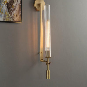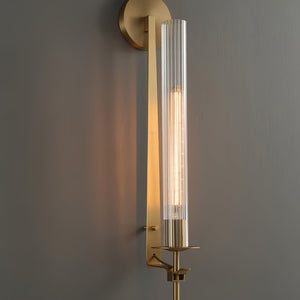 Solid Brass Wall Lamp With Ribbed Glass For Farmhouse Interiors
