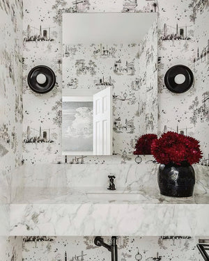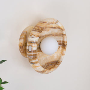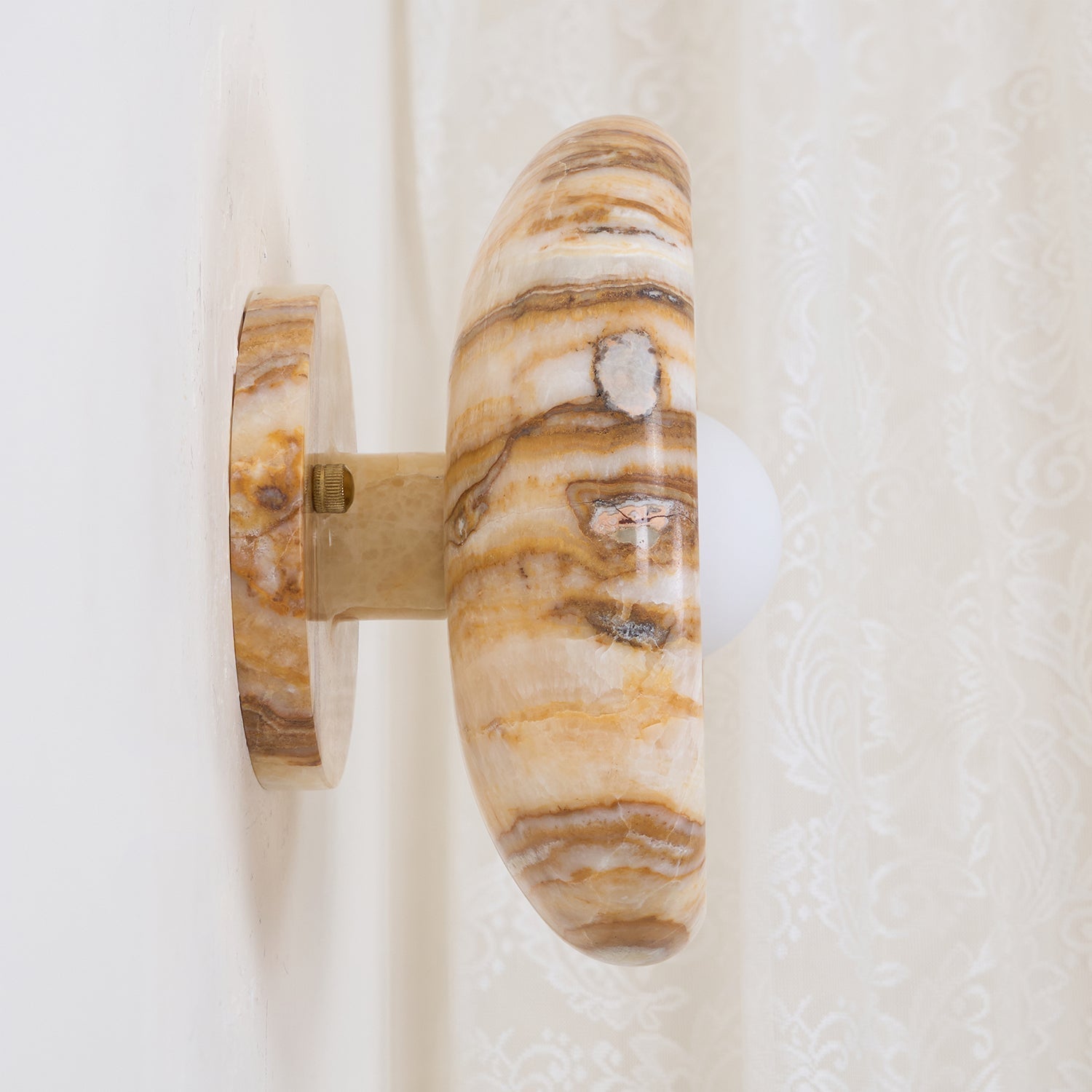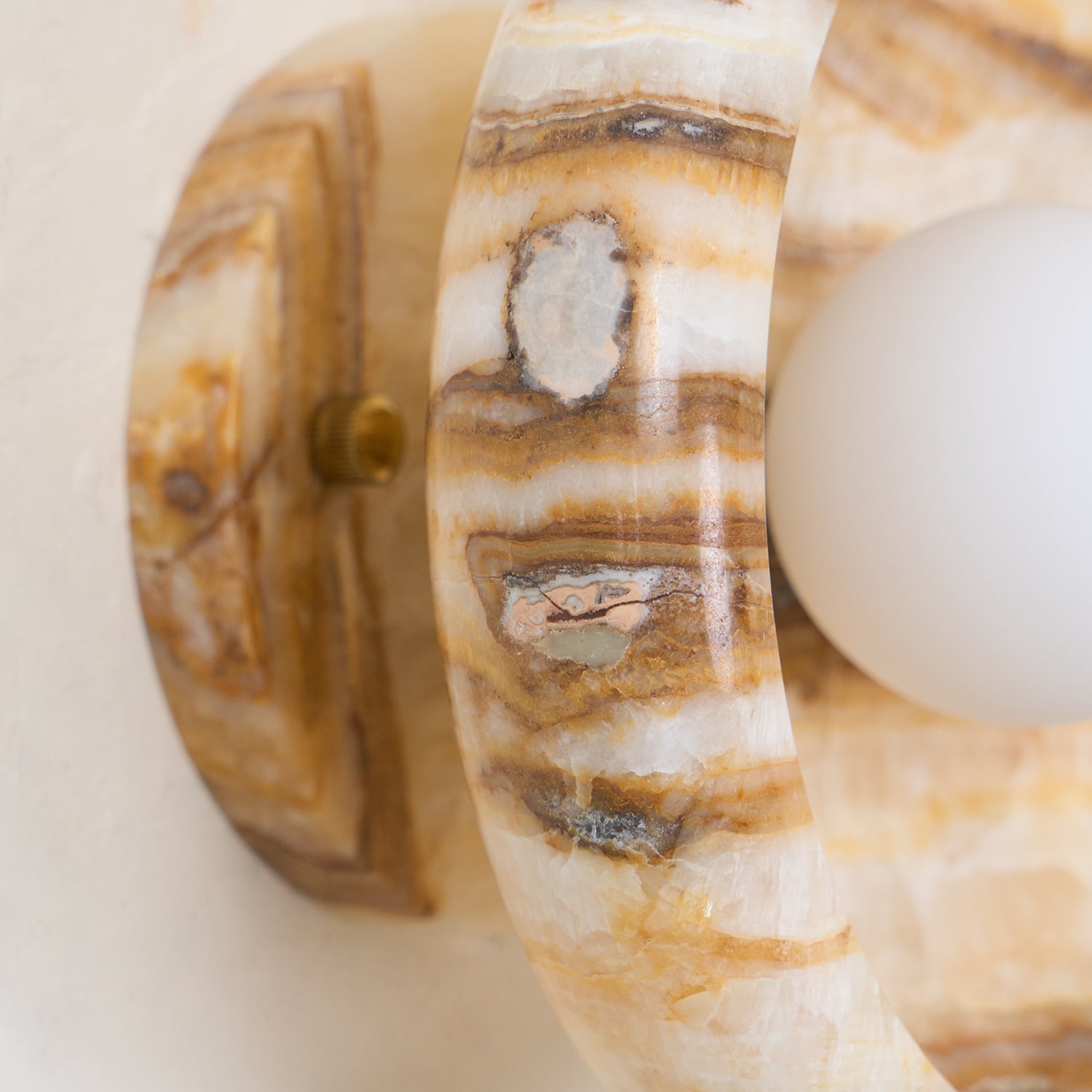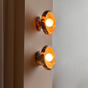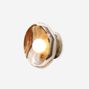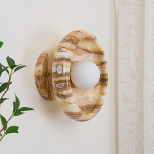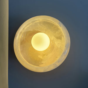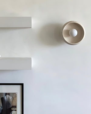 This wall light combines a refined marble body with glass detailing to deliver a clean, contemporary touch to spaces where moisture is a consideration. It is hardwired and damp-rated, making it suitable for bathrooms and covered outdoor areas.