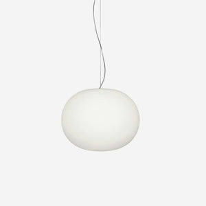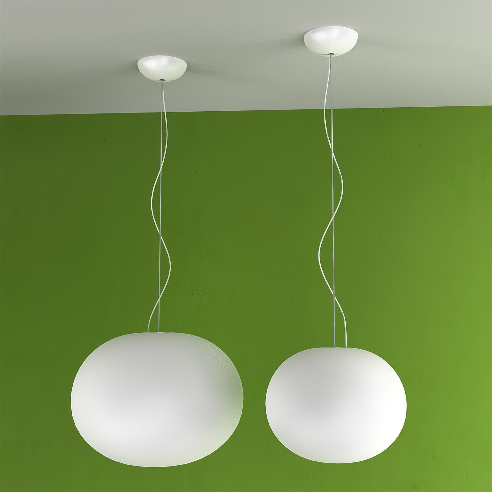 The shade is crafted from glass, paired with a sturdy metal suspension. Finished in a pristine white, the fixture offers a clean, contemporary look that can blend with both modern and timeless interiors. This is a hardwired ceiling light that accepts an E26 or E27 socket and is compatible with dimmer switches (dimmer not included), allowing you to tailor brightness to the moment.