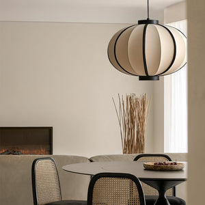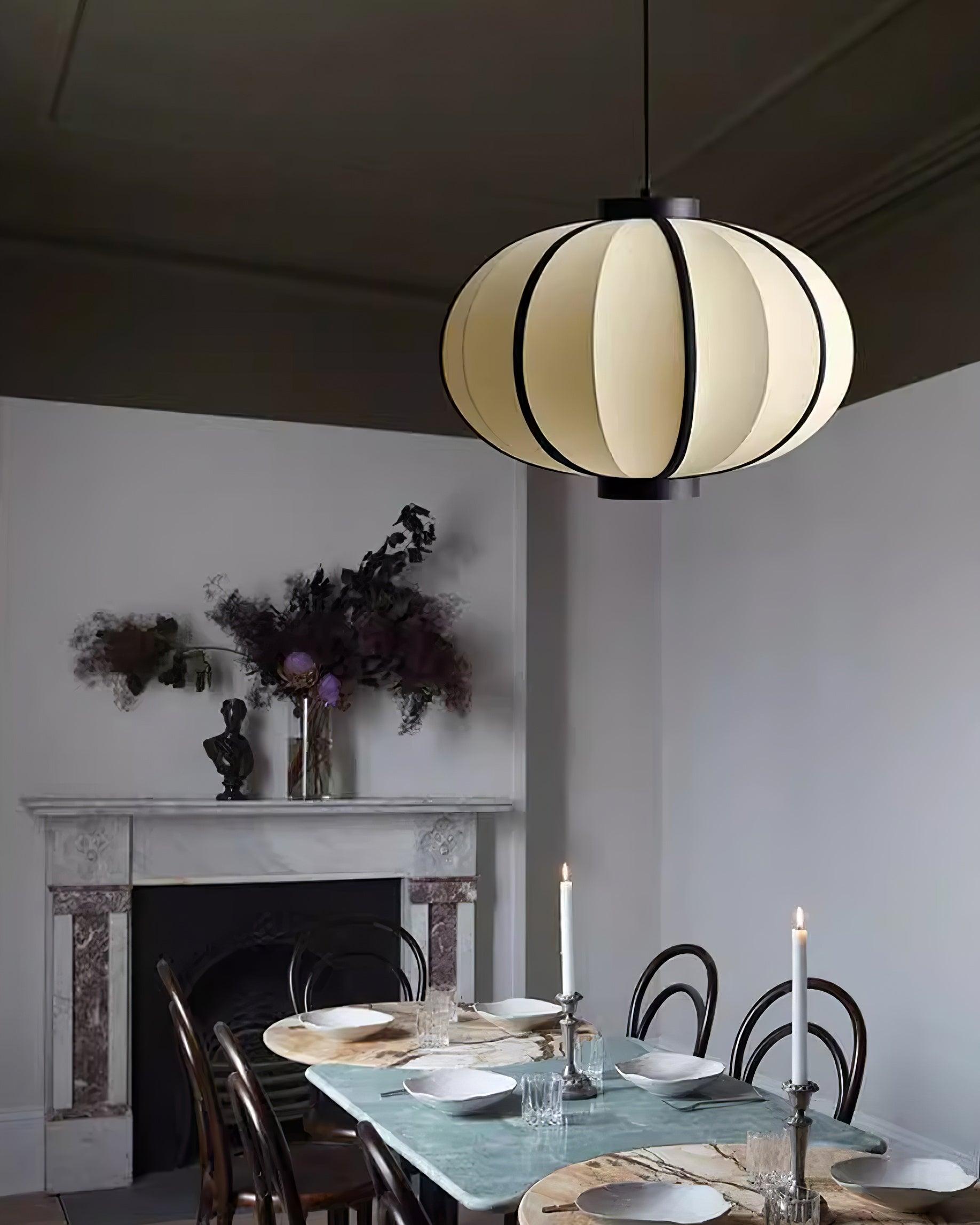 This vintage-inspired pendant light combines a white fabric shade with a black metal frame to create a refined focal point for dining rooms, kitchens, or living spaces. It delivers a warm, diffused glow that enhances ambience without overpowering the room.