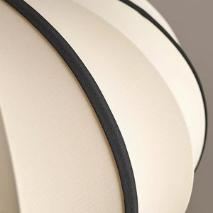 The shade is crafted from fabric with a white finish, paired with a robust black metal frame. The colour combination of black and white offers versatile styling that complements a range of interior schemes. The fixture is designed for hardwired installation and uses a standard bulb base.
