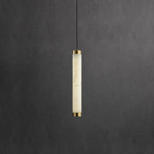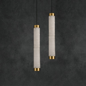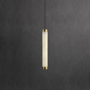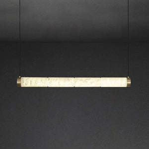 This Alabaster Strip Pendant Light with Brass Accents combines a refined alabaster body with warm brass fittings to create a contemporary pendant that remains versatile across interiors. The natural stone diffuses light softly, delivering a comforting ambient glow while showcasing subtle veining that makes each piece unique.
