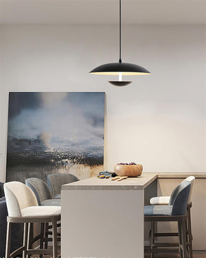 Introducing a minimalist pendant light with a discreet, integrated LED design that suits contemporary settings. This fixture provides a clean, unobtrusive silhouette while delivering steady, warm illumination. It is available in black or white finishes to harmonise with a range of interior styles.