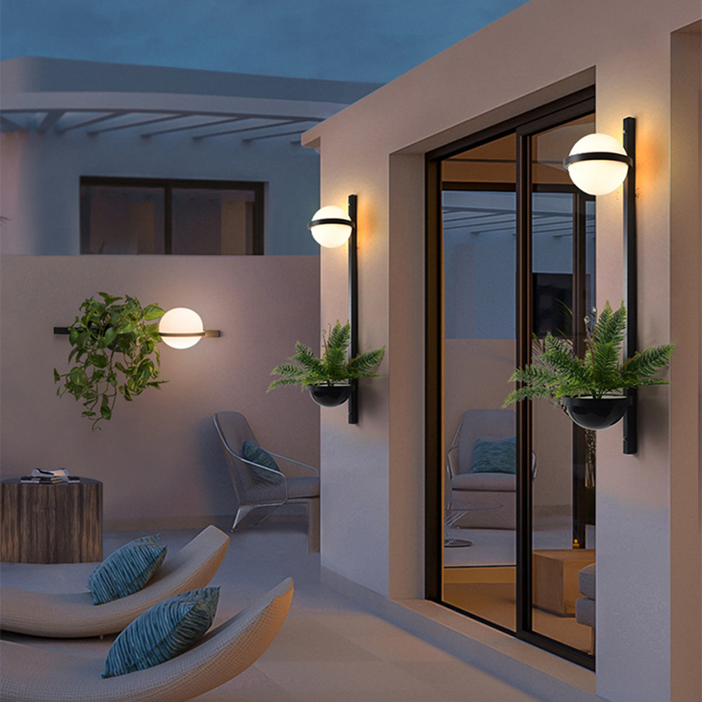 Elevate your outdoor space with this Globe Metal Outdoor Wall Light, thoughtfully designed to pair ambient illumination with a built-in planter. Finished in a two-tone black and white palette, the fixture brings a contemporary edge to gateways, patios and garden walls while offering a small display area for greenery.