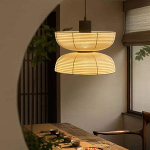 Paper And Fabric Pendant Light With Ambient Glow