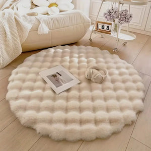 Tapis Rond en Fausse Fourrure de Lapin – Doux, Luxueux et Lavable