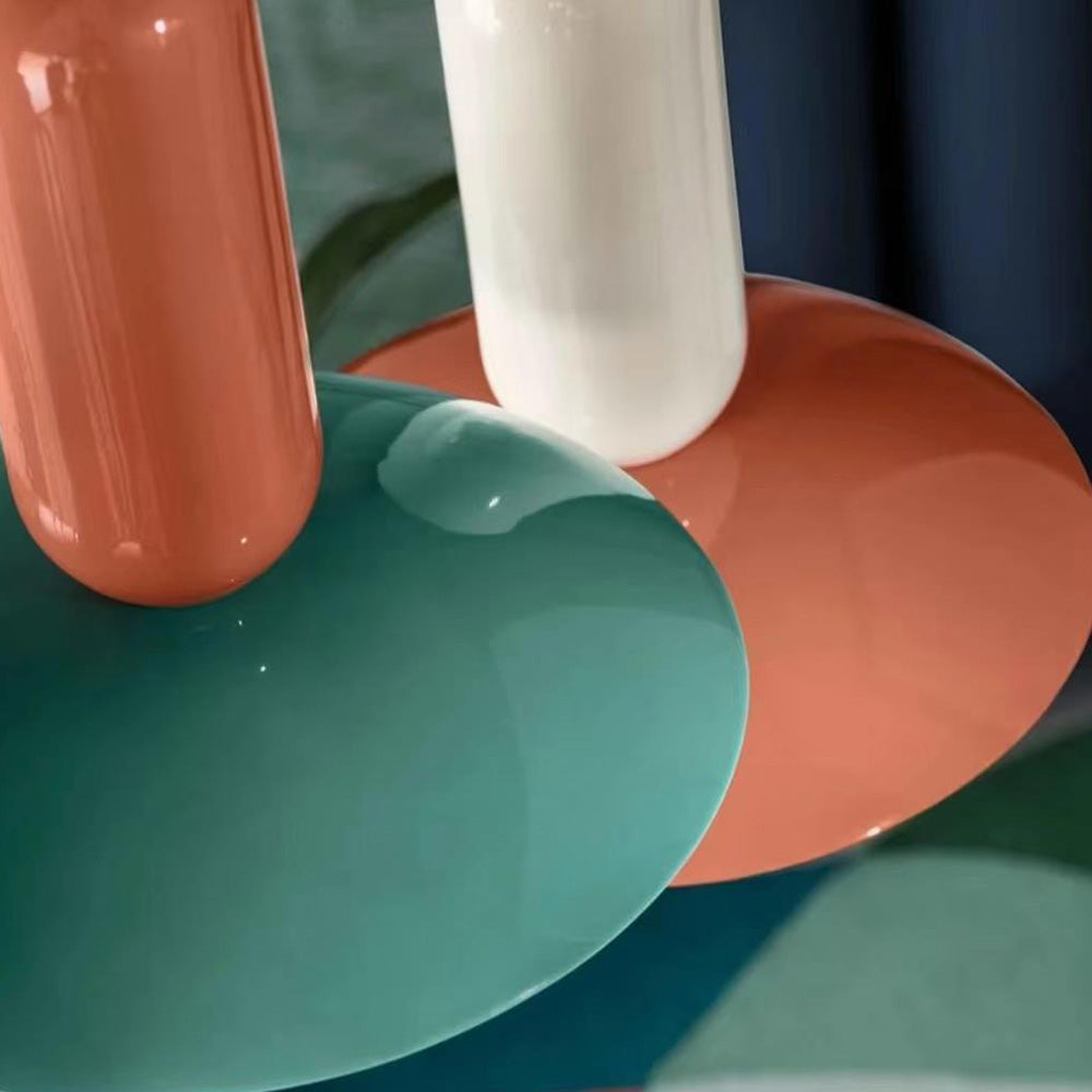 The pendants feature a distinctive dome‑cone form that softens light and adds architectural interest. Constructed from metal with a durable finish, they deliver a sturdy, premium presence. Each unit showcases a two‑tone colour pairing, contributing personality without overpowering the space: one mix combines green and white, another pairs orange with green, and the third contrasts white with orange. Together, they offer a cohesive yet expressive colour story that suits modern, Scandinavian and eclectic interiors.