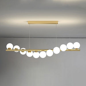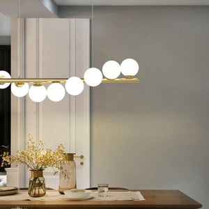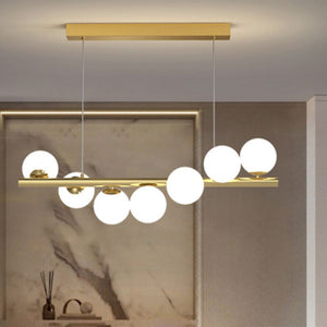 This Nordic-inspired linear LED pendant light features adjustable heads, giving you flexible control over where illumination is directed. Crafted with a metal frame and glass shades, it combines a warm, inviting gold finish with clean, contemporary lines to create a striking focal point in living spaces and work areas alike. The fixture is designed for indoor, hardwired installation and is not dimmable. It accepts bulbs with a G9 base (bi-pin) and is compatible with voltages in the 110–240V range. Height is adjustable via the chain/cord, allowing you to tailor the drop to suit your ceiling height and room layout. Suitable for rooms around 5–10 m², it works well in study nooks and living areas. The bulb is not included. For safety and optimal results, consider professional installation.