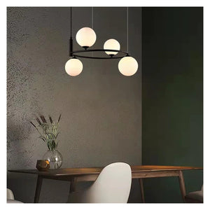 The Valentina Nordic Ring Pendant Light offers a refined interpretation of modern illumination, marrying a sturdy metal frame with gracefully crafted glass elements. The circular form is enhanced by a ring of glass spheres, creating a contemporary focal point that elevates any interior with quiet sophistication.