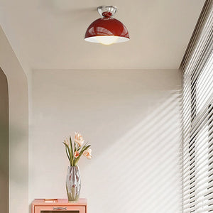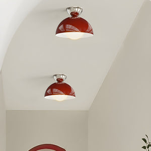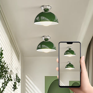 Designed with a minimalist aesthetic in mind, the fixture features fluid, understated curves that sit flush against the ceiling. The dome shape offers a timeless silhouette that complements both mid-century and contemporary schemes. Colour options include chrome with red accents or chrome with green accents, allowing you to infuse a subtle dash of personality into your room.